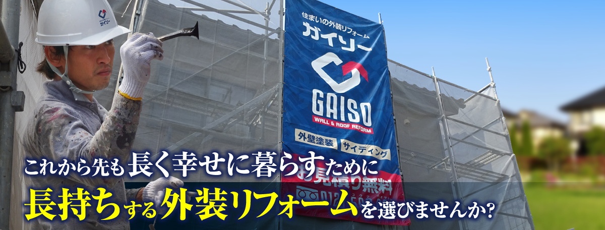 わたしたちガイソーは、プロの視点から、いかにしてお客様の家の耐久性を長く維持させられるかを第一に考え、最適なプランをご提案致します。 外装リフォームをご検討の方は、どうぞお近くのガイソーまでご相談いただければ幸いです。