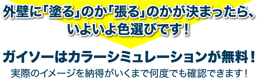 外壁に「塗る」か「張る」か決まったら、 次は色選びです!