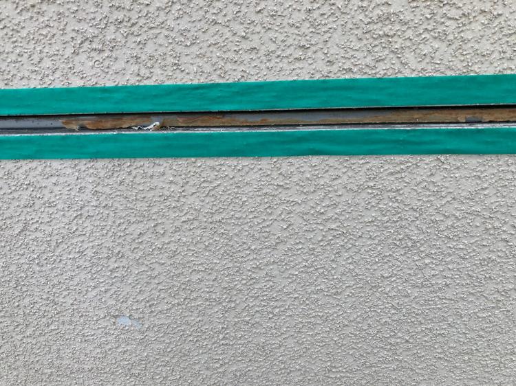 <既存の版間コーキングは撤去し、マスキングテープで養生>